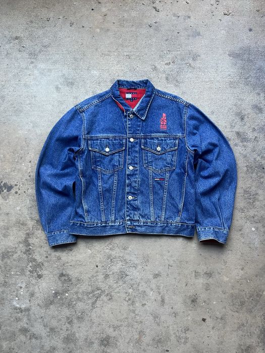 1990 s Vintage Tommy Hilfiger Denim Jacket Embroidered Back
