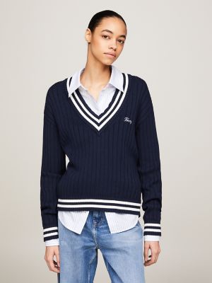 Relaxed Fit Ribbed V Neck Sweater Tommy Hilfiger USA