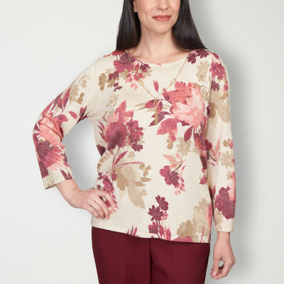 Alfred dunner sweater tops clearance, Alfred Dunner Isn T It Romantic Womens Round Neck 3 4 Sleeve clearance