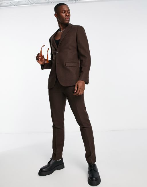 Topman skinny two button wool mix suit jacket in brown ASOS