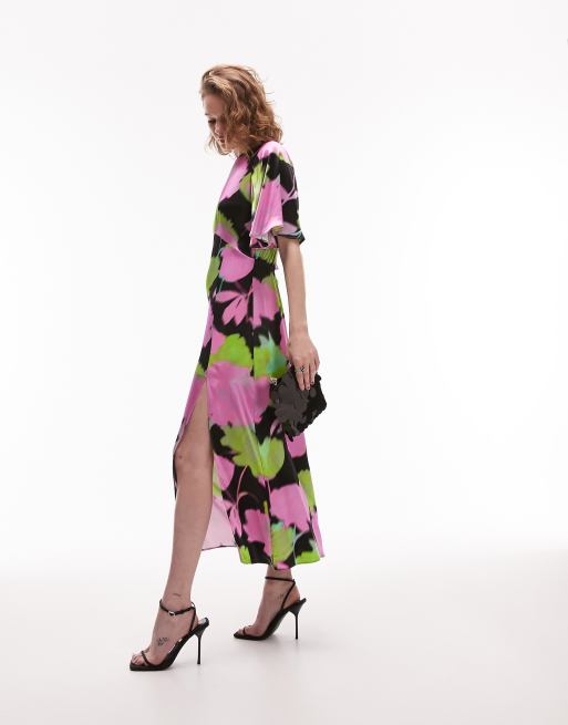 Topshop Austin bold floral print angel sleeve midi occasion dress in multi