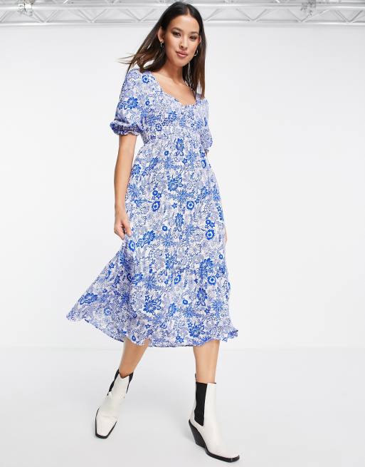 Topshop premium contrast strap cut out midi dress in cobalt blue