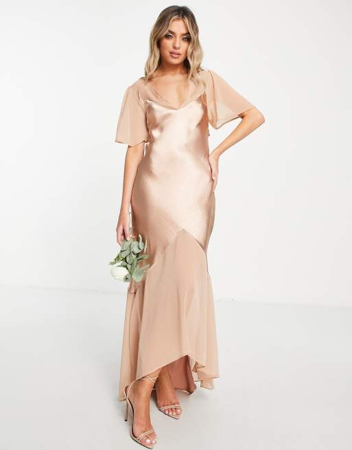 Topshop bridesmaid mixed fabric angel sleeve dress in blush
