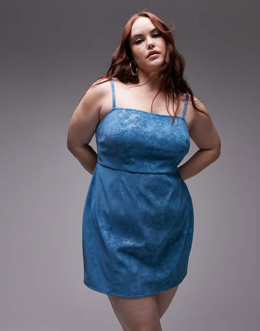 Topshop leather dress clearance, Topshop Curve textured faux leather mini dress in blue clearance