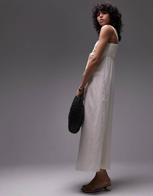 Topshop linen contrast tie chuck on maxi dress in ivory