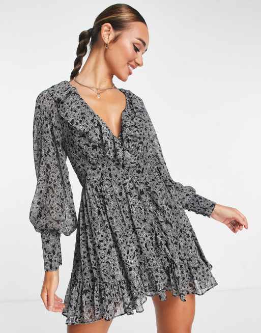 Topshop star ruffle wrap mini tea dress in mono