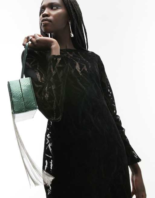 Topshop stud velvet frill dress clearance, Topshop velvet lace midi dress in black clearance