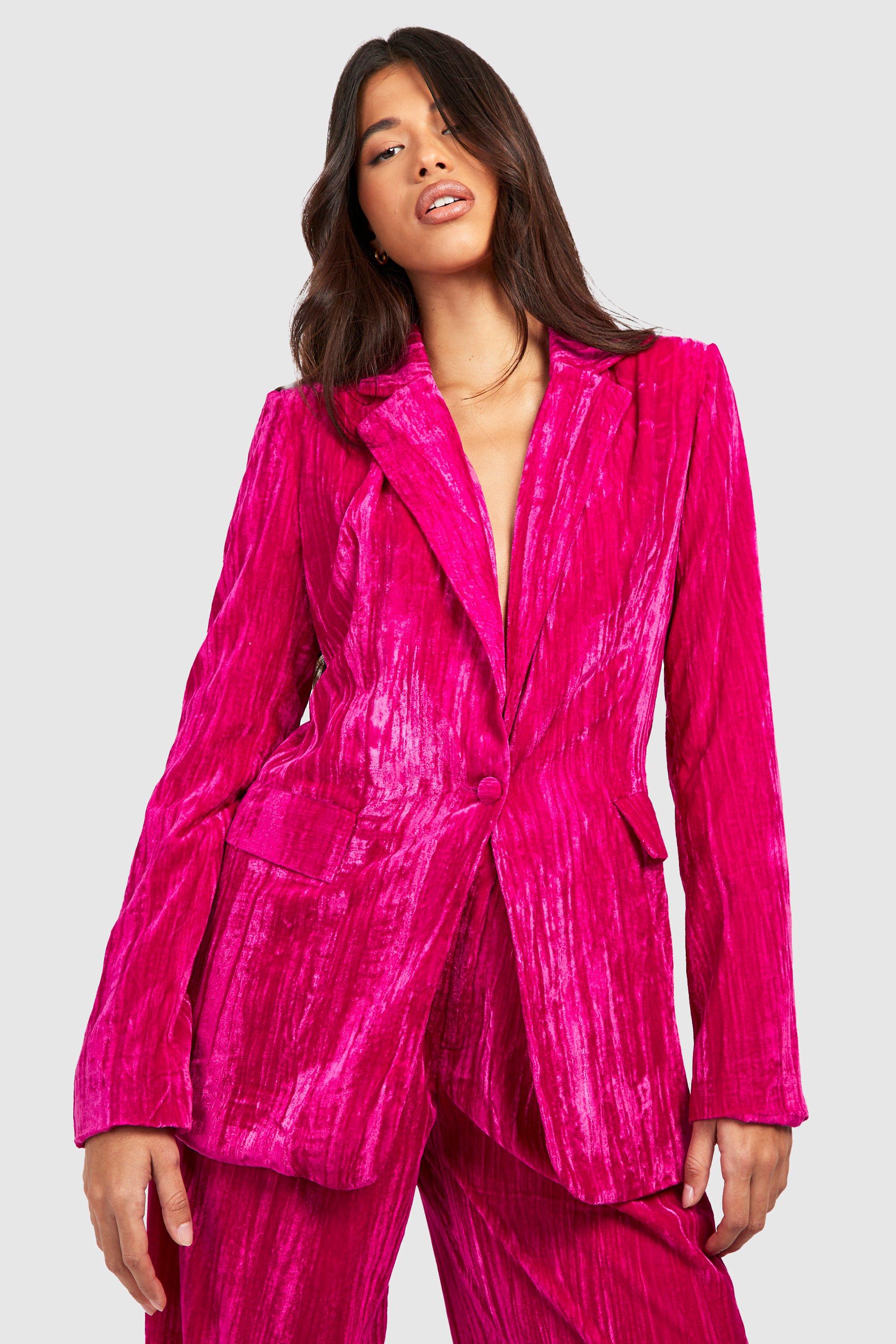 Tall Crinkle Velvet Single Breasted Blazer boohoo