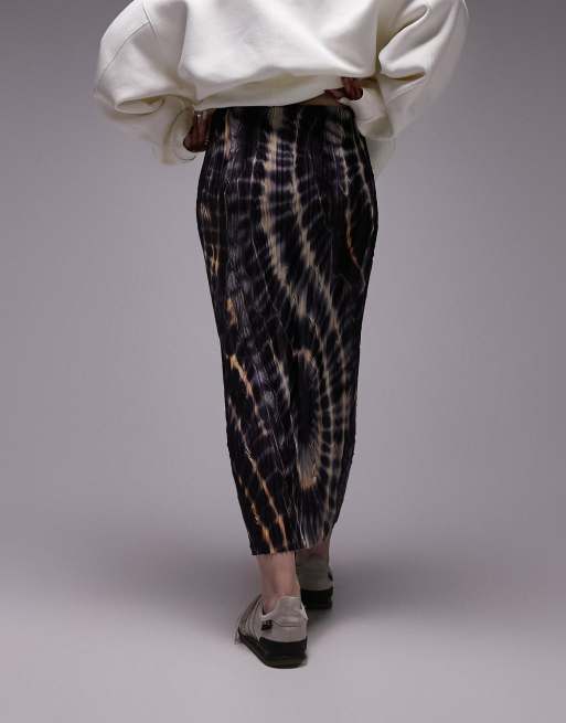 Topshop Petite tie dye plisse midi skirt in dark blue and gold