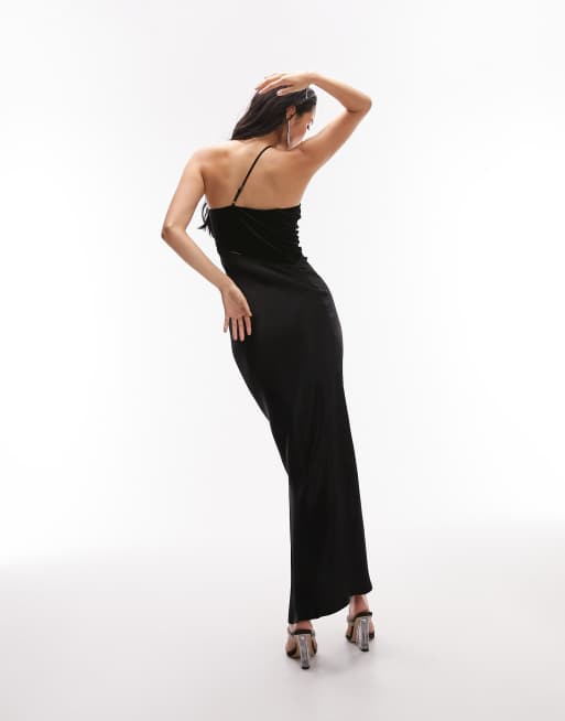 Topshop one shoulder velvet and satin cut out midi dress in black