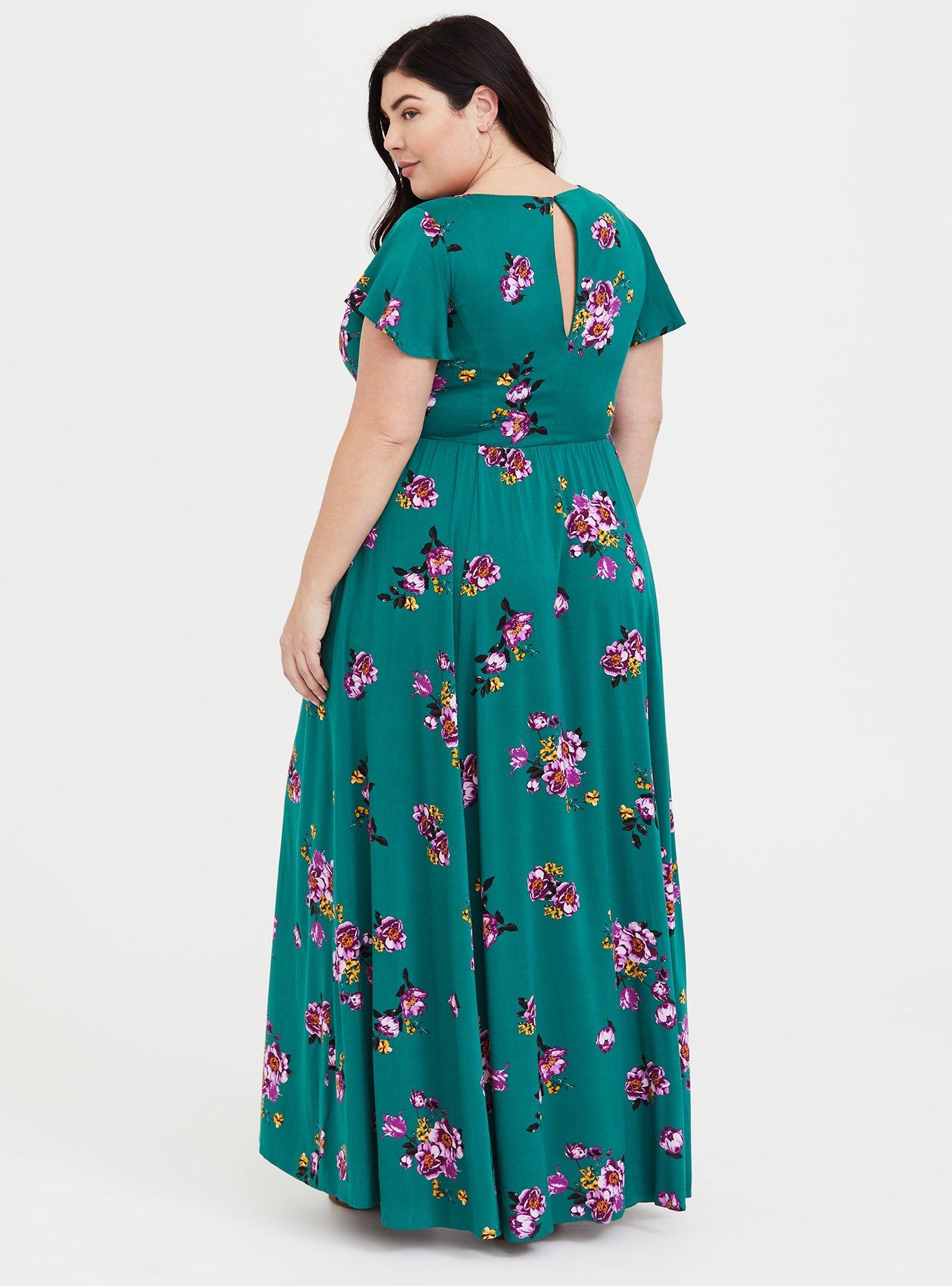 TORRID GREEN FLORAL CHALLIS MAXI DRESS 3X Maxi dress with