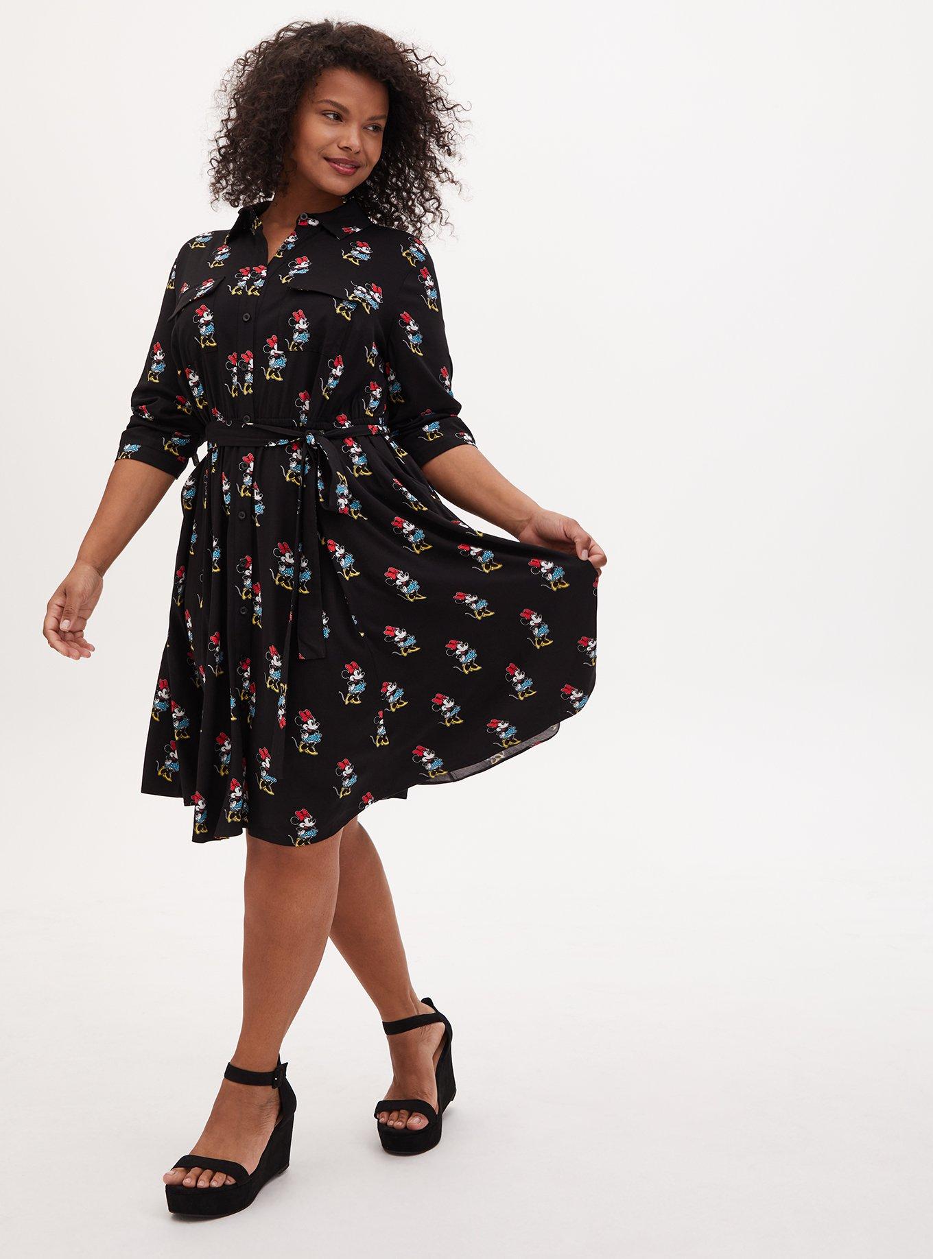 Torrid minnie mouse dress clearance, Plus Size Disney Minnie Mouse Black Challis Self Tie Shirt Dress clearance