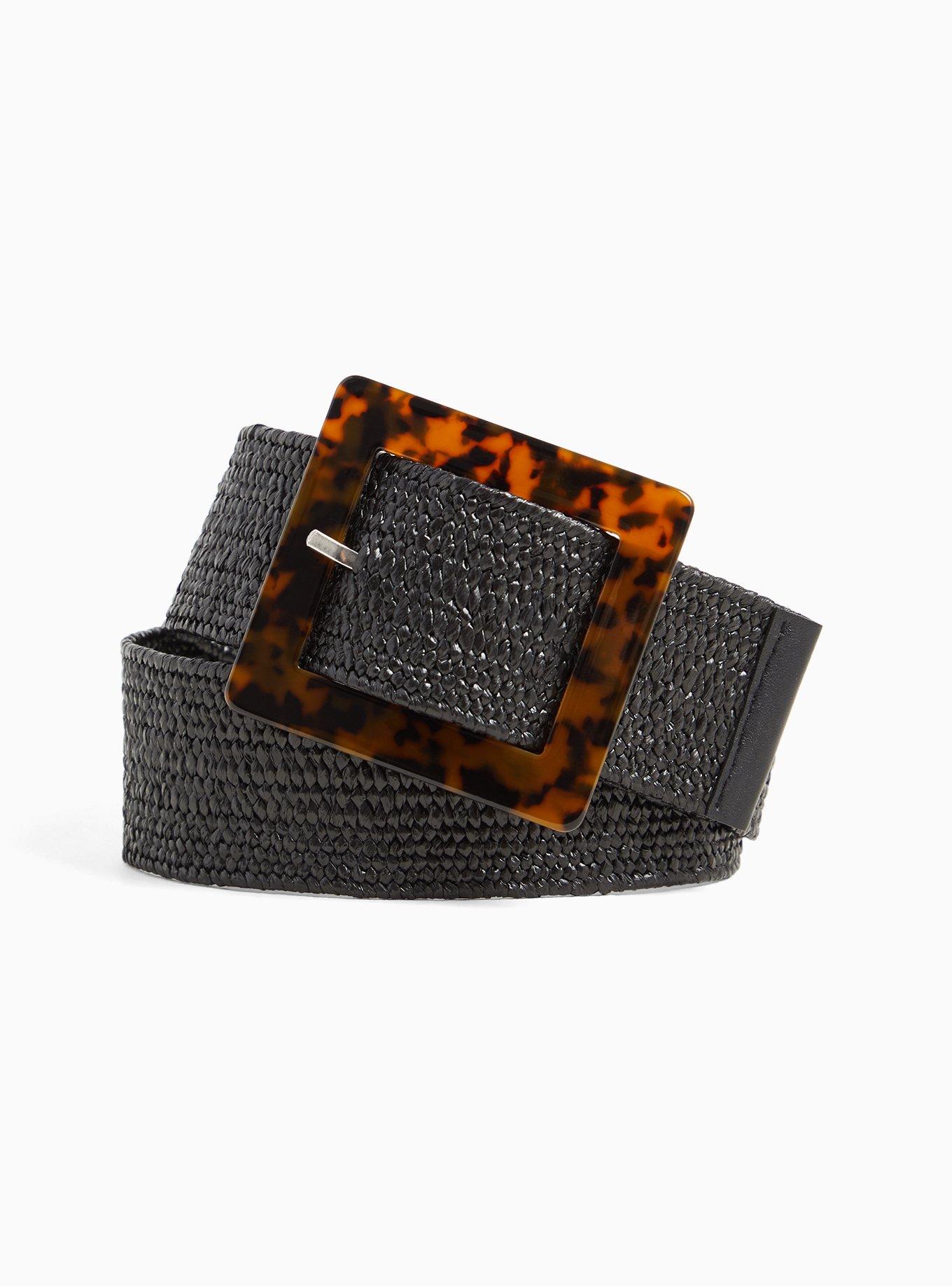 Plus Size Black Straw Tortoiseshell Buckle Belt Torrid