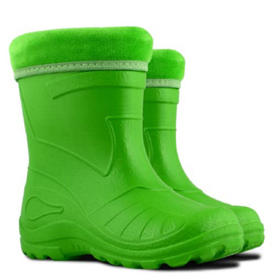 Kids Fleece Wellingtons. Town Country Wellies. Green and Yellow