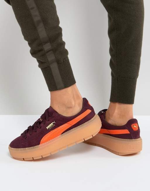 Puma Trace Platform Sneakers In Burgundy And Orange