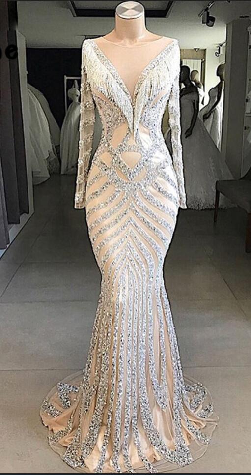 Couture Mermaid Evening Dress 2018 Beaded Tassel Muslim Turkish