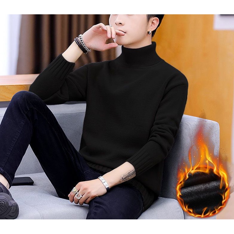 Fleece Lining Thickened Turtleneck Sweater Men Winter Long Sleeved