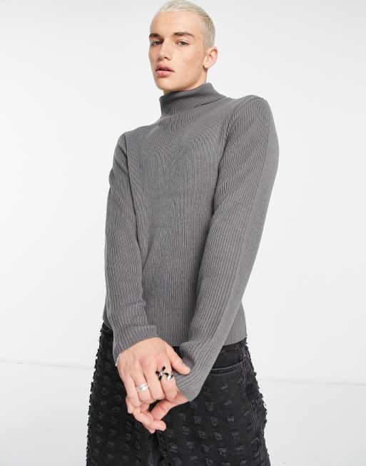 COLLUSION rib knit turtle neck sweater in steely gray ASOS