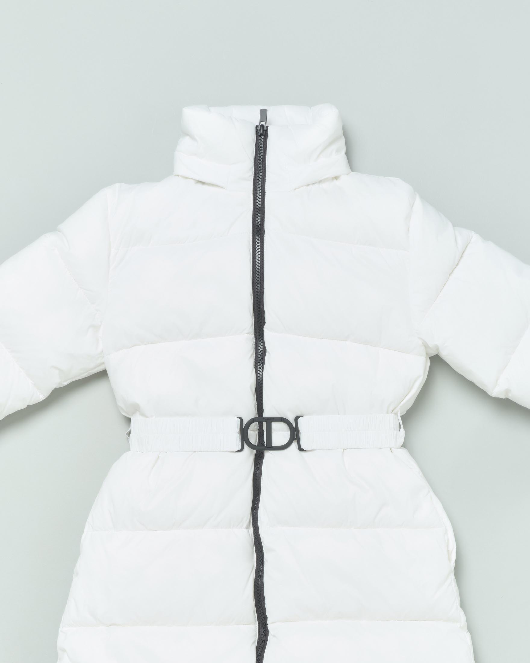Piumino lungo bianco con cappuccio removibile polsini in