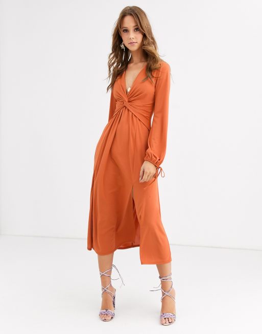 ASOS DESIGN Long sleeve twist front midi dress ASOS