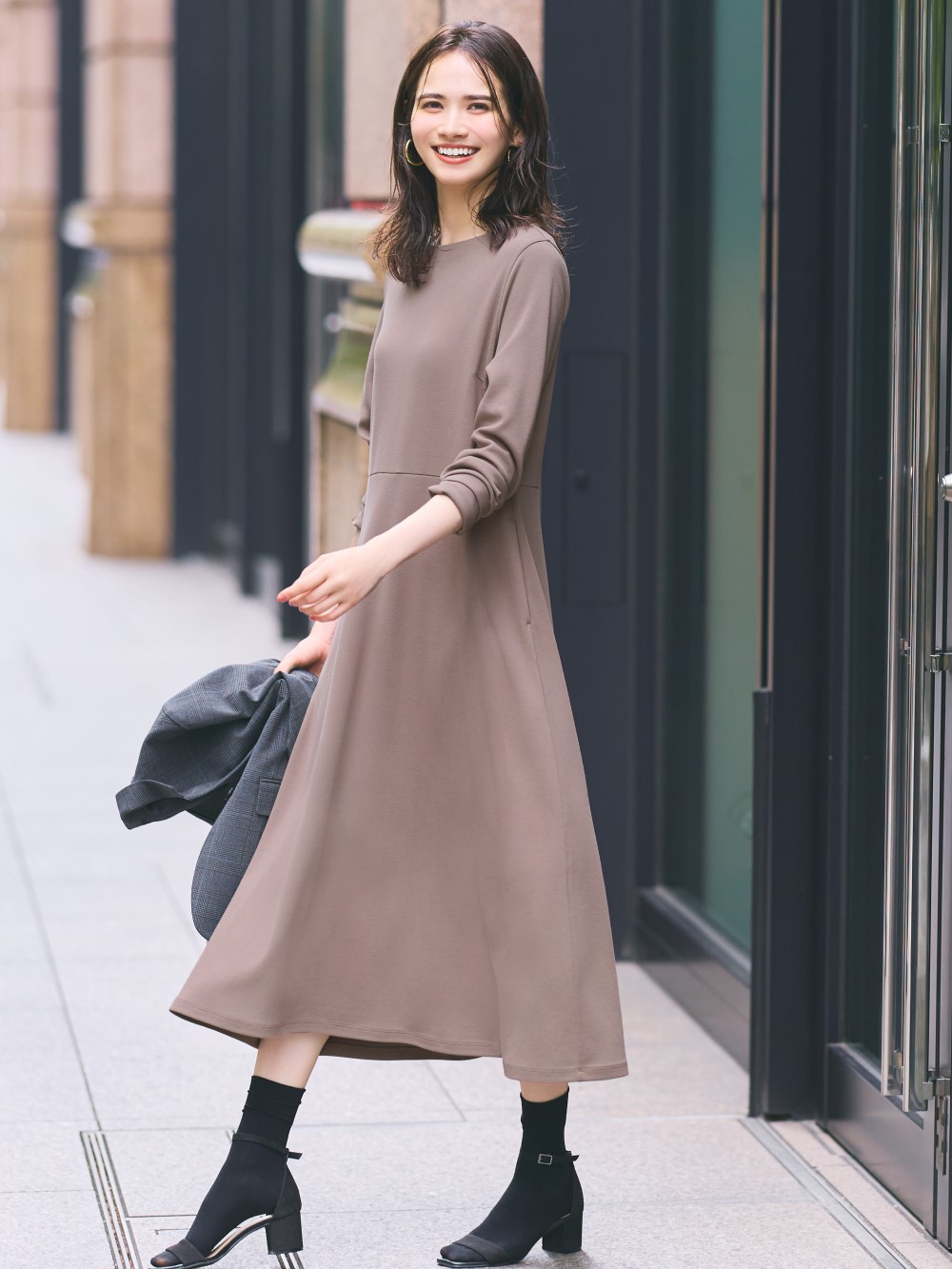 WOMEN S PONTE LONG SLEEVE FLARE DRESS UNIQLO ID