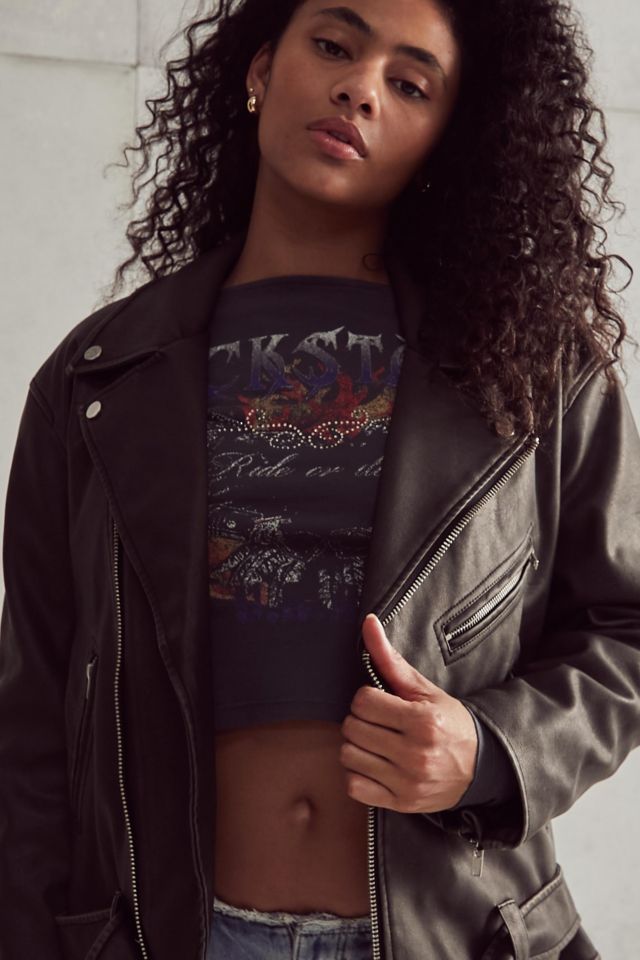 UO Faux Leather Oversized Biker Jacket Urban Outfitters