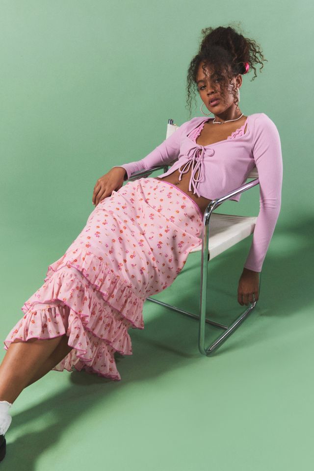 Kimchi Blue Lenora Chiffon Ruffle Midi Skirt Urban Outfitters