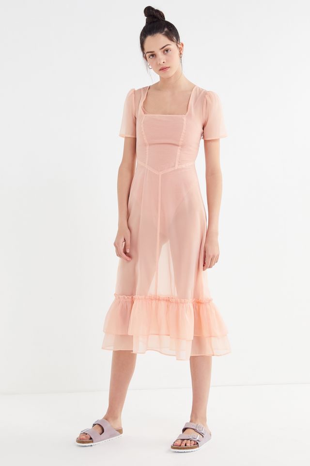 Urban outfitters sheer dress clearance, UO Sheer Square Neck Midi Dress Urban Outfitters clearance