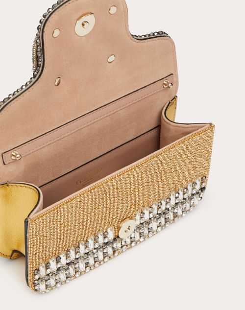 Loc Embroidered Small Shoulder Bag for Woman in Gold Crystal