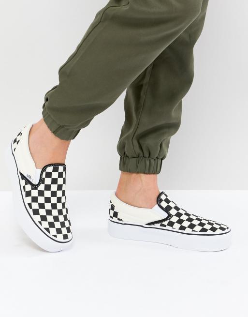 Vans slip on plateforme damier clearance, Vans Era Baskets plateforme carreaux style damier et cossais Noir et blanc pur clearance