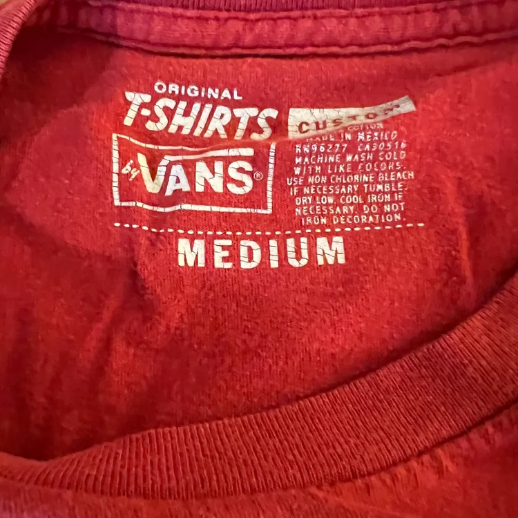 Vans T Shirt Men s Size M Red Short Sleeve Crew Neck Logo Namesake Spell Out