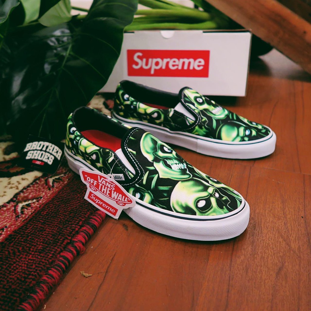 BISA COD SEPATU VANS SLIP ON X SUPREME SKUUL PILE