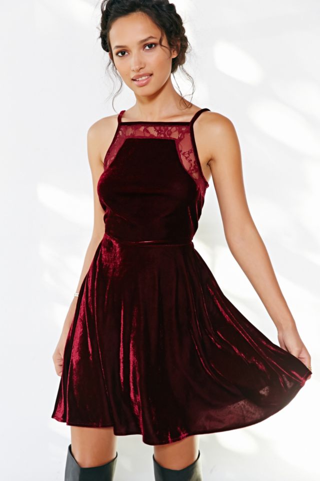 Oh My Love Square Neck Lace Velvet Skater Dress Urban Outfitters