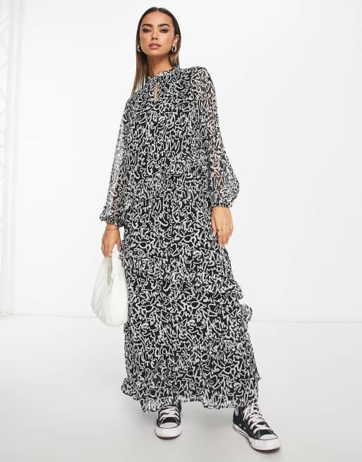 Vero moda aware dress clearance, Vero Moda Aware maxi smock dress with ruffles in mono print clearance