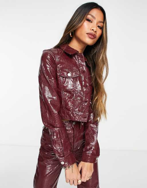 Vero Moda croc leather look cropped jacket in port red part of a