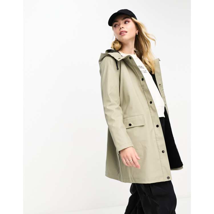 Vero Moda Tall rubberized hooded raincoat in black ASOS