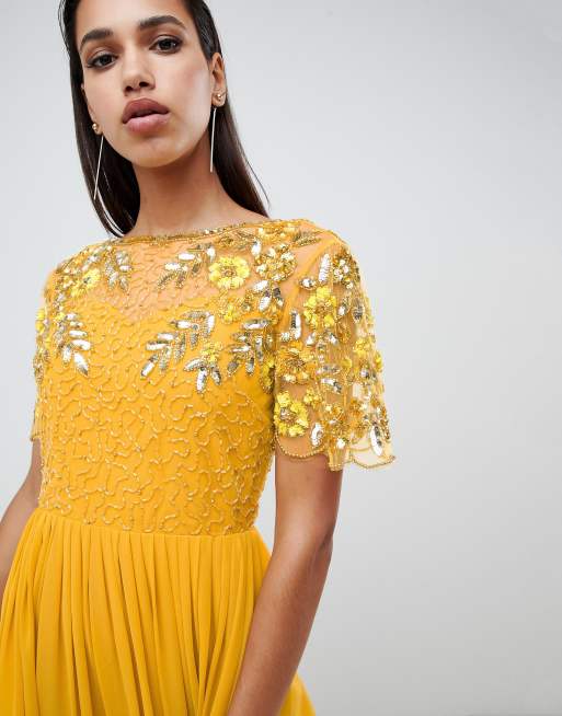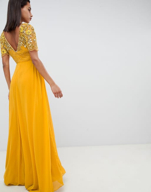 Virgos lounge rahaya contrast embellished maxi dress in mustard clearance