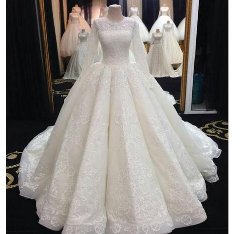 Wedding dress muslimah 2018 clearance, 2018 Middle East Muslim Wedding Dresses Long Sleeves Applique Lace clearance