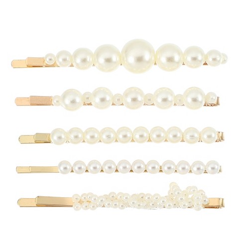 Unique Bargains Girl s Pearl Simple Cute Style Metal Hair Clip White 1 Set of 5 Pcs