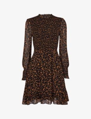 Whistles Shirred Leopard Print Dress In Multi coloured ModeSens