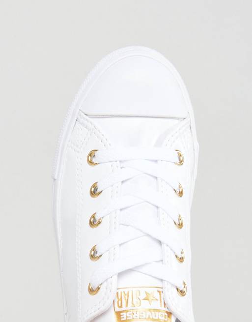 Converse Chuck Taylor Dainty Sneakers In White With Gold Eyelets