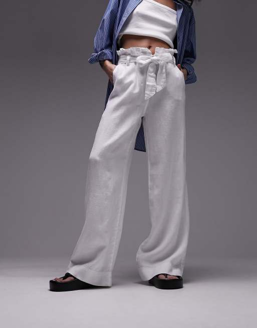 White paperbag wide leg trousers clearance, Paperbag Waist Striped Culotte Pants Heimish clearance