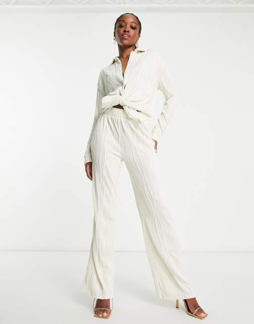White silk wide leg trousers clearance, 4th Reckless plisse wide leg pants in white part of a set clearance