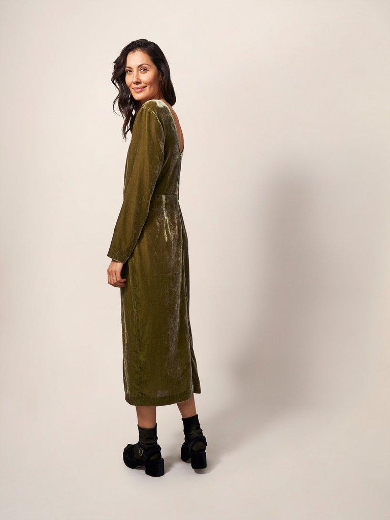 Nadia Velvet Dress in DARK CHARTREUSE White Stuff