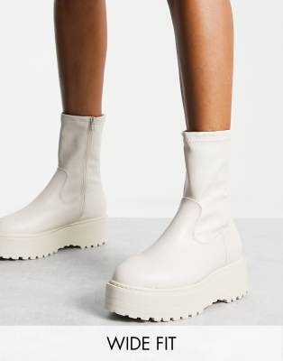 Wide fit chunky ankle boots clearance, Public Desire Wide Fit Pabla Chunky Sole Ankle Boots In Off White clearance