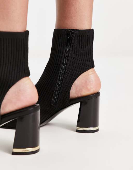Sky Wide Fit Black Knit Lace Up Peep Toe Ankle Boots SIMMI London