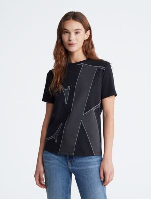 Womens calvin klein shirt clearance, Monogram Oversized Logo Crewneck T Shirt Calvin Klein USA clearance