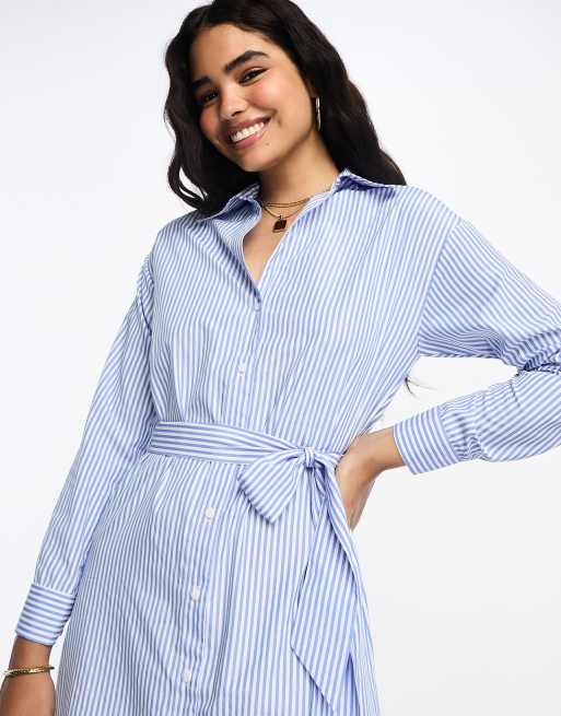 Womens midi shirt dress clearance, Miss Selfridge poplin belted midi shirt dress in blue stripe clearance