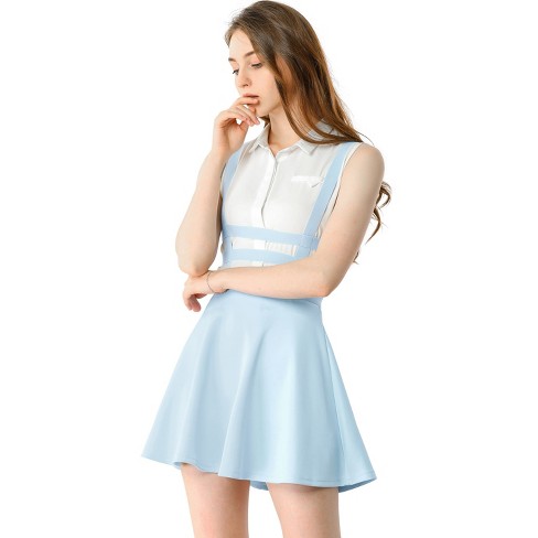 Allegra K Women s Pleated A Line Elastic Waist Mini Braces Suspender Skirt Sky Blue Large