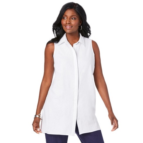 Women's plus size linen shirts clearance, Jessica London Women s Plus Size Linen Blend Sleeveless Shirt 28 W White clearance